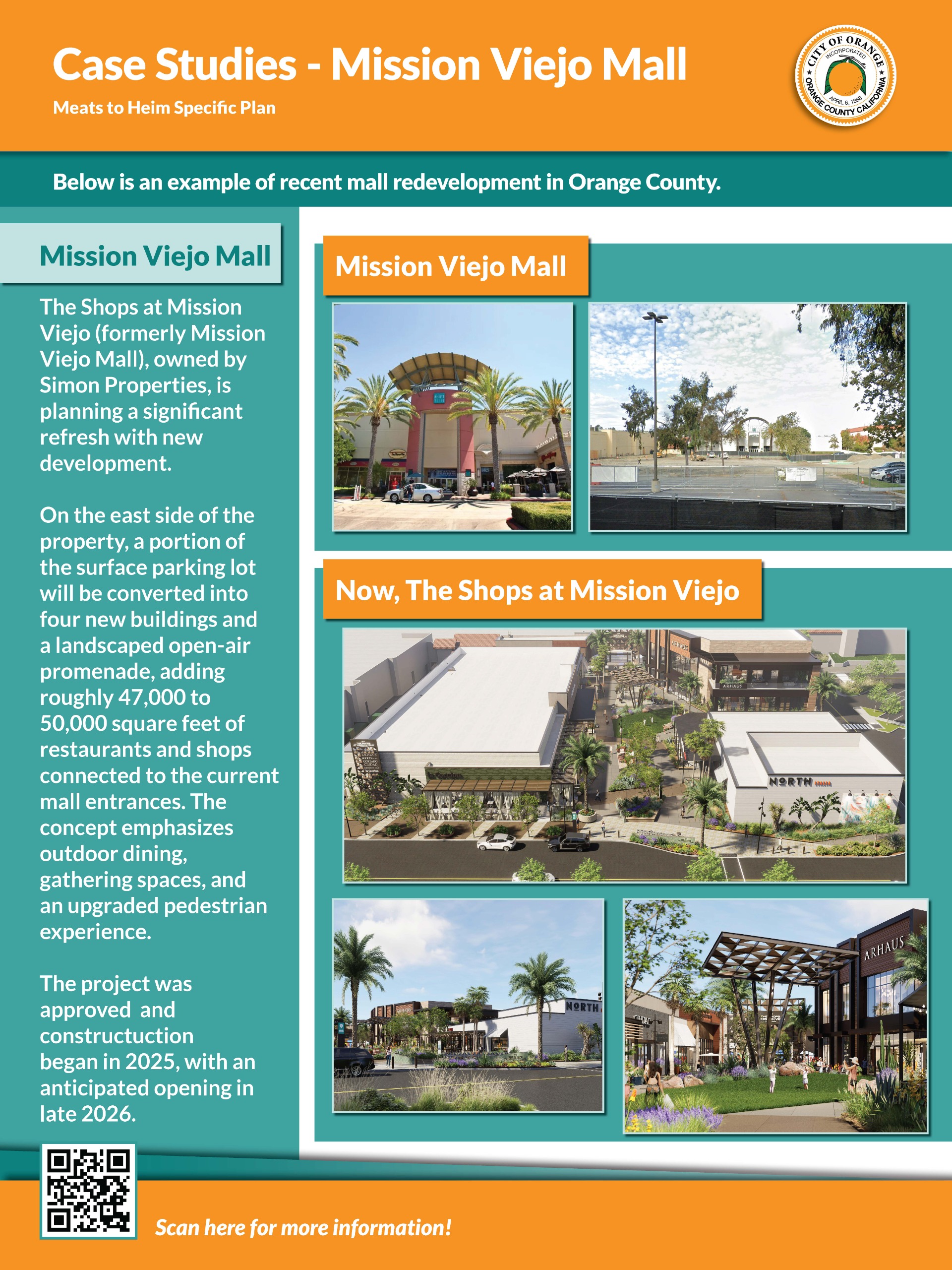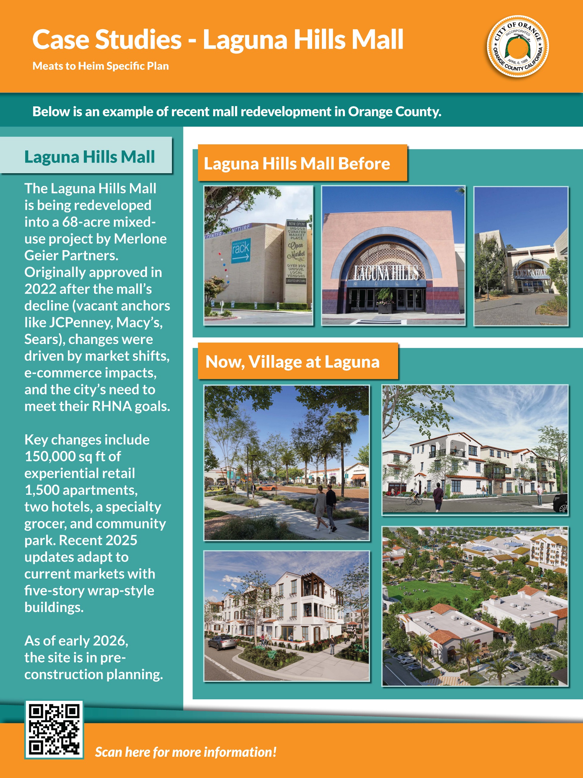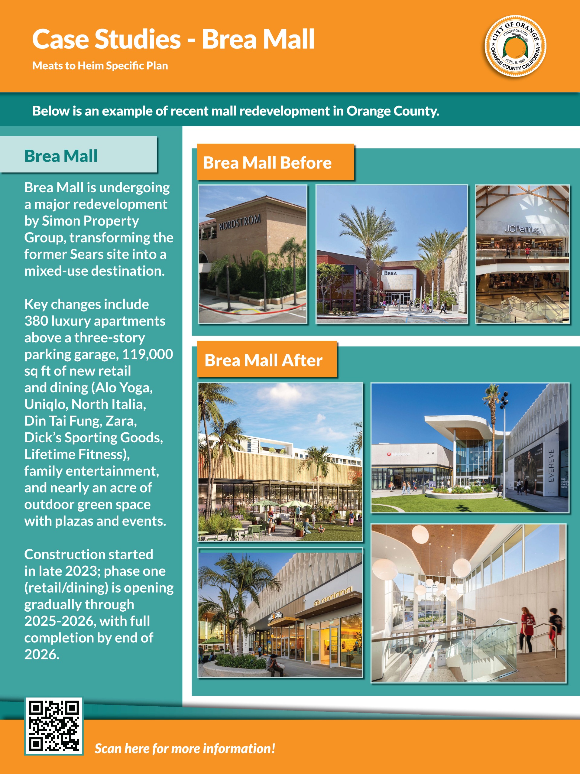 Explore the case studies boards for inspiration, these show examples of other malls in Orange County being redeveloped.