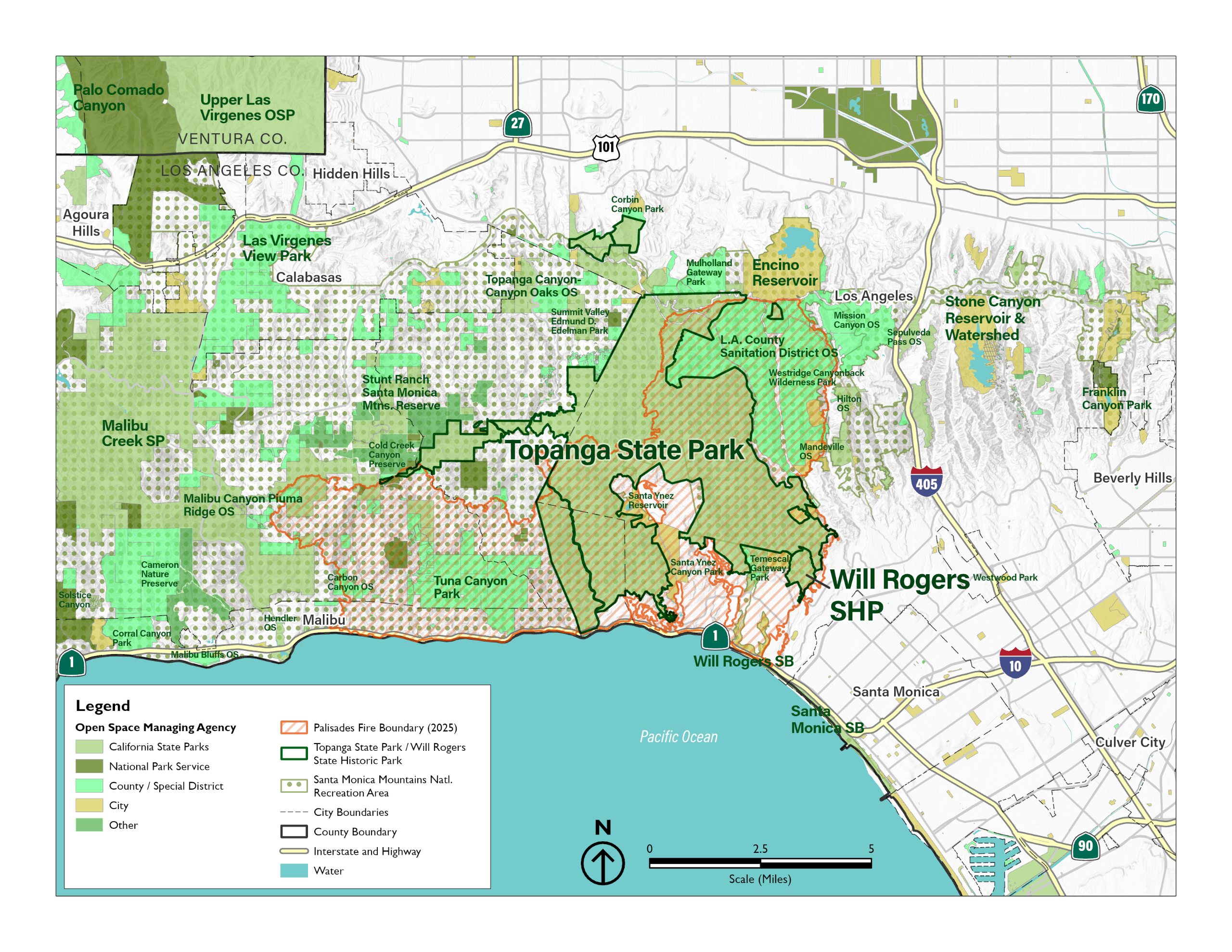 Over 8,000 acres in Topanga State Park and Will Rogers State Historic Park in the Santa Monica Mountains burned during the Palisades Fire in January 2025. Following the January 2025 firestorms, State Parks is doubling down on work to protect Californians and our lands from catastrophic wildfire. Read about the first year of recovery and what State Parks is doing to improve wildfire resiliency on the Recovery Journey page.
